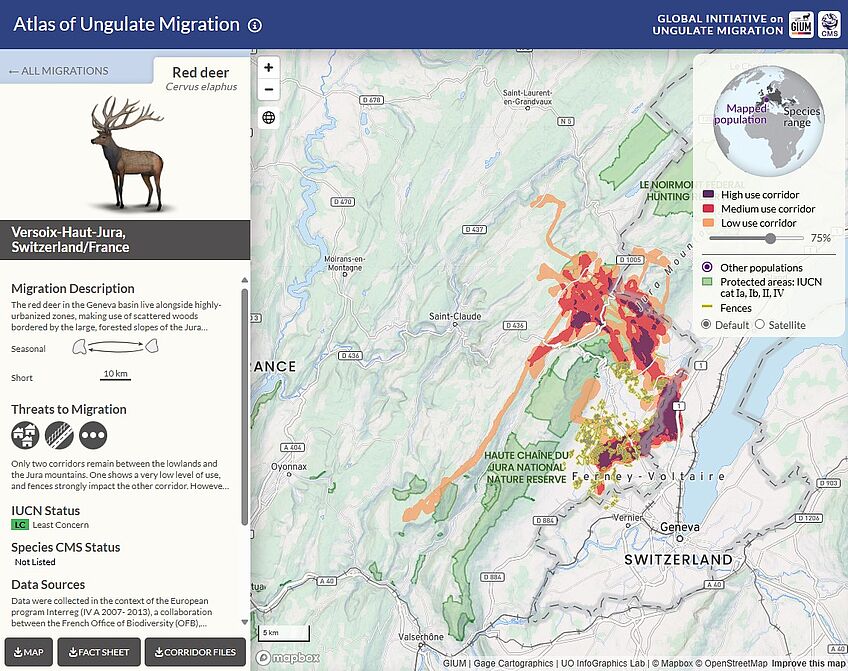 À ce jour, l’atlas cartographie en détails les grands corridors empruntés par 20 populations mondiales d’espèces sauvages, du gnou emblématique des plaines de Tanzanie à l’éléphant d’Afrique, en passant par les bouquetins des Alpes. « L’atlas est là pour démontrer que les animaux se déplacent », ajoute Anne Loison, directrice de recherche au CNRS, qui étudie depuis des années les ongulés en France et à l’étranger, jointe par 30millionsdamis.fr