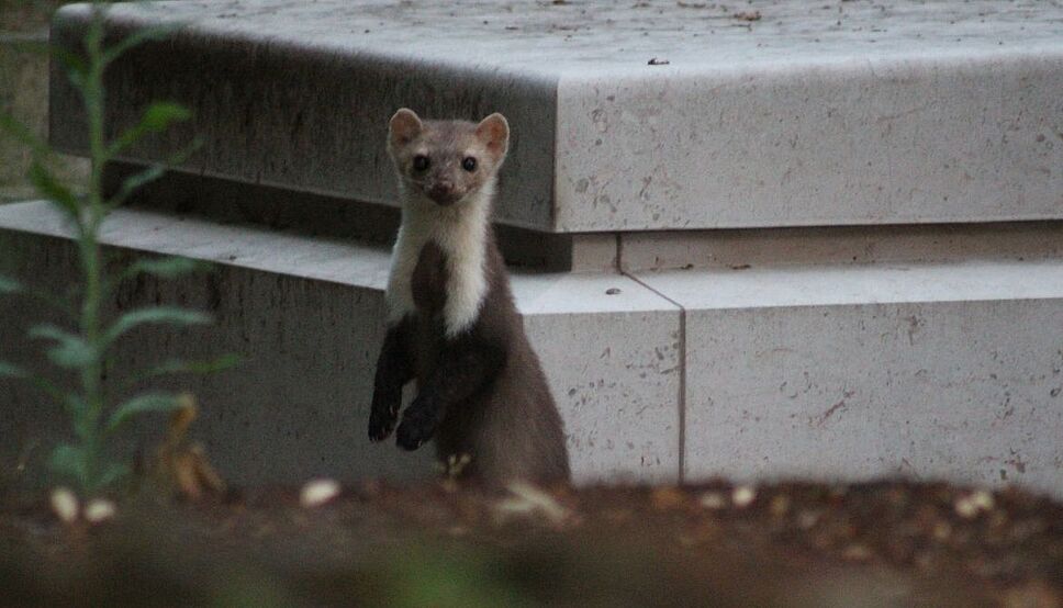 Un havre de paix pour les animaux, qui trouvent des conditions de vie assez proches de la pleine nature, en pleine métropole, sur un site où l’on se croirait à la campagne. Par cette fraîche soirée d’hiver, les renards ne sont pas les seuls à nous surveiller dans le cimetière… Il y a les corneilles bien sûr, mais pas seulement. Un autre oiseau, juché sur un arbre, brise le silence. « Vous entendez la chouette ? Ça c’est la chouette hulotte mâle, elle doit nous observer, suppose Benoît Gallot, passionné par cette faune qui l’entoure. On va peut-être entendre la femelle qui va répliquer. » Ne pas oublier non plus la fouine (photo ci-dessous) et les chats qui trainent également dans les parages.