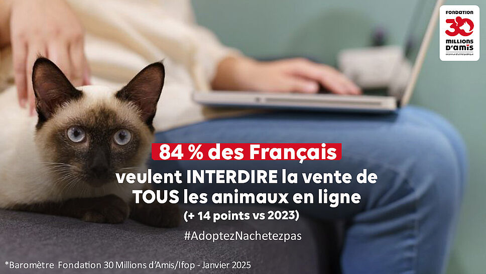 La Fondation 30 Millions d’Amis travaille actuellement, au niveau national, à l’interdiction de la vente en ligne de chiens et de chats par les animaleries et, au niveau européen, au renforcement des règles d’élevage pour mettre fin aux usines à chiots dans le cadre des travaux en cours au Parlement européen.