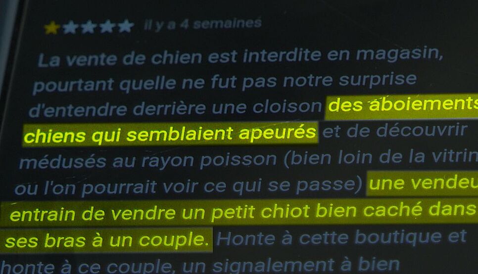 Un internaute signale la présence de chiens et chiots à la vente dans une animalerie. ©Fondation 30 Millions d’Amis (Capture d’écran avis Internet)