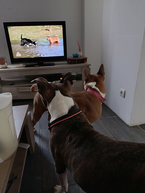 Auprès de Coralie, la nouvelle recrue s’est immédiatement montrée « pot de colle » : « Dès que je sortais à peine quelques minutes, elle hurlait à la mort », se souvient son adoptante. Une habitude qui s’est estompée, notamment grâce à la présence de Mayka, elle-aussi adoptée après un passé difficile – avec qui la cohabitation « se passe à merveille » : « elles sont devenues inséparables, jusqu’à dormir en ‘Ying & Yang’ ensemble », se réjouit Coralie.