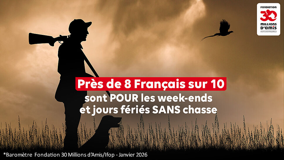 La Fondation 30 Millions d’Amis et l’ASPAS rappellent que la chasse est un loisir pratiqué par moins de 1,5 % de la population française, et que cette activité dangereuse, polluante et largement inutile d’un point de vue écologique, provoque des souffrances évitables à des millions d’animaux sauvages.