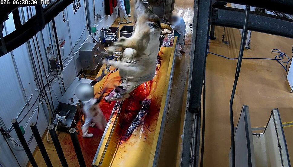 Parmi les souffrances relevées par L214, on retrouve des bovins « égorgés encore conscients », dans un box de contention « inadapté » d’après l’association, « rendant l’étourdissement aléatoire et empêchant une perte de conscience suffisante avant la saignée ». On note aussi des animaux découpés vivants, des veaux placés jusqu’à 3 dans ce box de contention, alors que « les animaux doivent être étourdis un par un et de façon isolée », rappellent les lanceurs d’alerte.