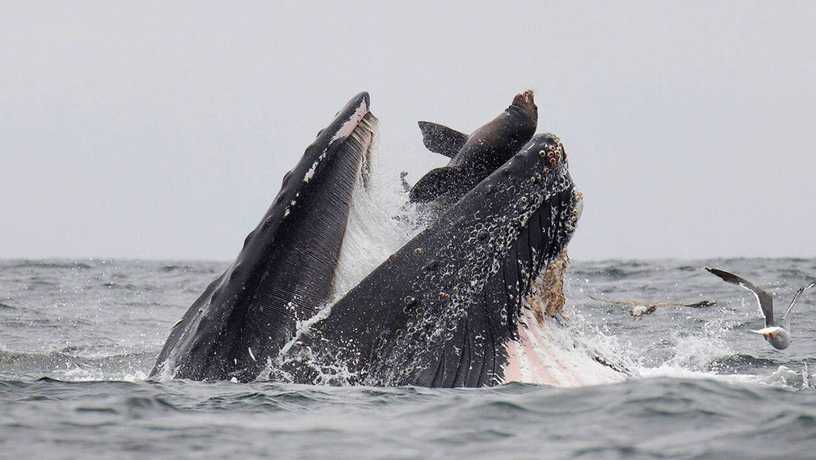 Rarissime photo d'un lion de mer tombant dans la gueule d'une baleine