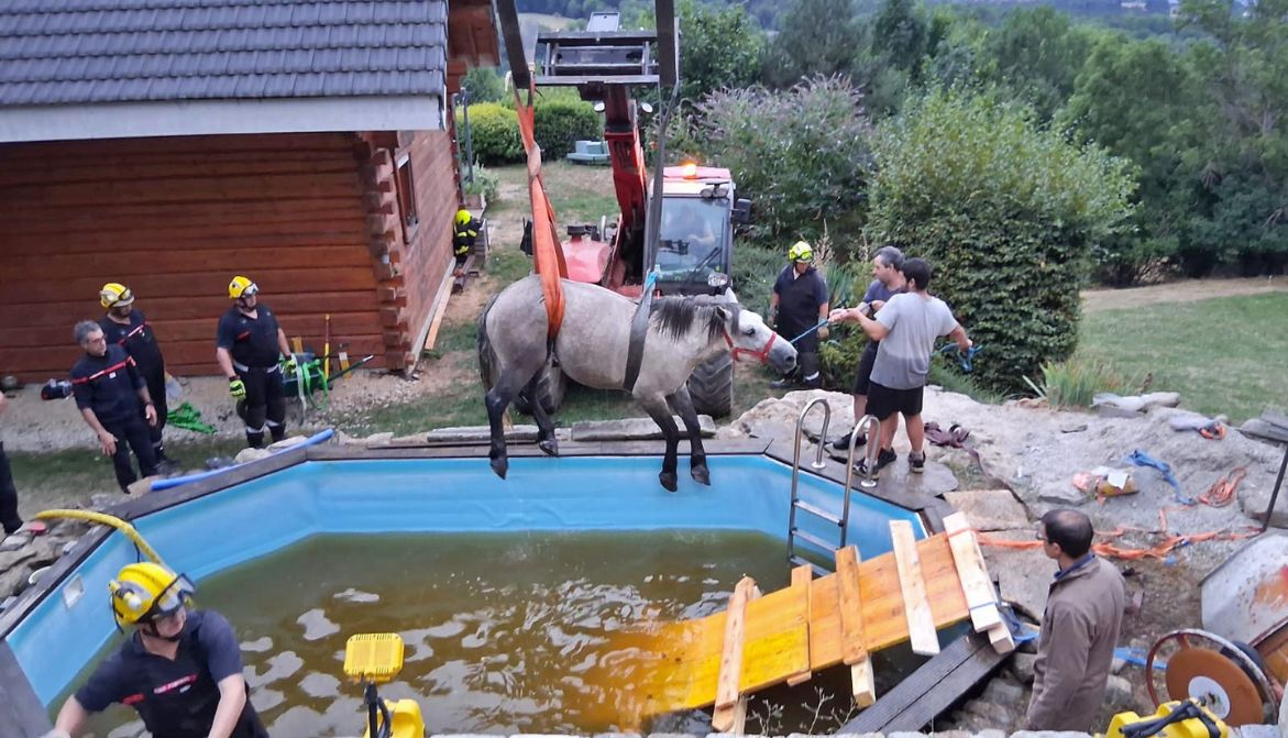 Les sapeurs-pompiers sauvent une jument et son poulain tombés dans une piscine
