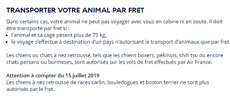 Sollicitée par 30millionsdamis.fr, la compagnie française, qui a dit « comprendre la peine des propriétaires de ce chien », explique néanmoins ne pas être en mesure de délivrer la moindre information supplémentaire tant que « l’enquête interne n’a pas abouti ». Depuis le 15 juillet 2019, plus aucun animal « à nez retroussé » ne peut voyager en vol de fret sur Air France.