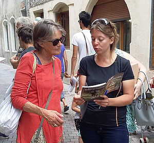 Chaque été, des éco-bénévoles sillonnent les départements concernés par la présence du loup, distribuant des brochures aux passants et engageant la discussion avec eux afin de répondre à leurs interrogations. « Trois bénévoles et un salarié partent ensemble vers un secteur concerné par la présence du loup, explique Fannie Malet, responsable du programme. Le matin, nous allons sur les marchés des villages pour recueillir les opinions des passants à l’aide d’un questionnaire, et pour les informer sur la politique mise en œuvre autour du loup. L’après-midi, nous proposons aux commerçants des brochures à distribuer à leurs clients. »