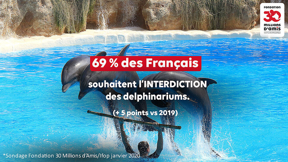 La 3ème vague du baromètre annuel « Les Français et le bien-être des animaux » mené par la Fondation 30 Millions d’Amis et l’Ifop* démontre que la protection animale prend de plus en plus d’ampleur au sein de la société et auprès de nos concitoyens. Principal enseignement de l’étude : les Français rejettent massivement les cirques avec animaux sauvages (72%, +5 vs 2019) et les delphinariums (69%, +5 vs 2019).