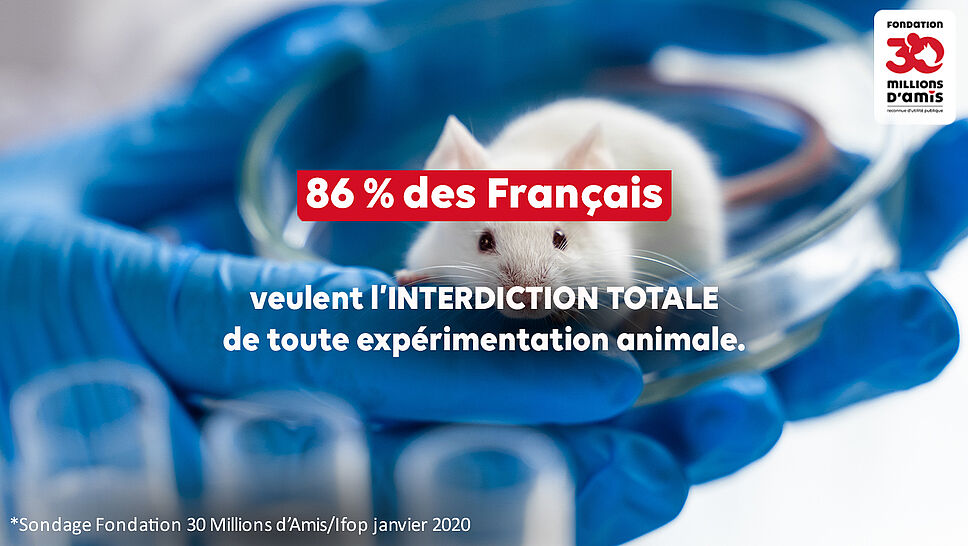 Dès lors qu’il est démontré que des méthodes substitutives existent, 86 % des Français sont favorables à l’interdiction totale de toute expérimentation animale. Près de 2 millions d’animaux ont été utilisés pour la science en France en 2016, selon le ministère de l’Enseignement supérieur, de la Recherche et de l’Innovation. La Fondation 30 Millions d’Amis adresse aux instances européennes une pétition afin qu’elle incite les Etats membres à mettre fin aux tests sur les animaux, déjà signée par plus de 330.000 personnes.