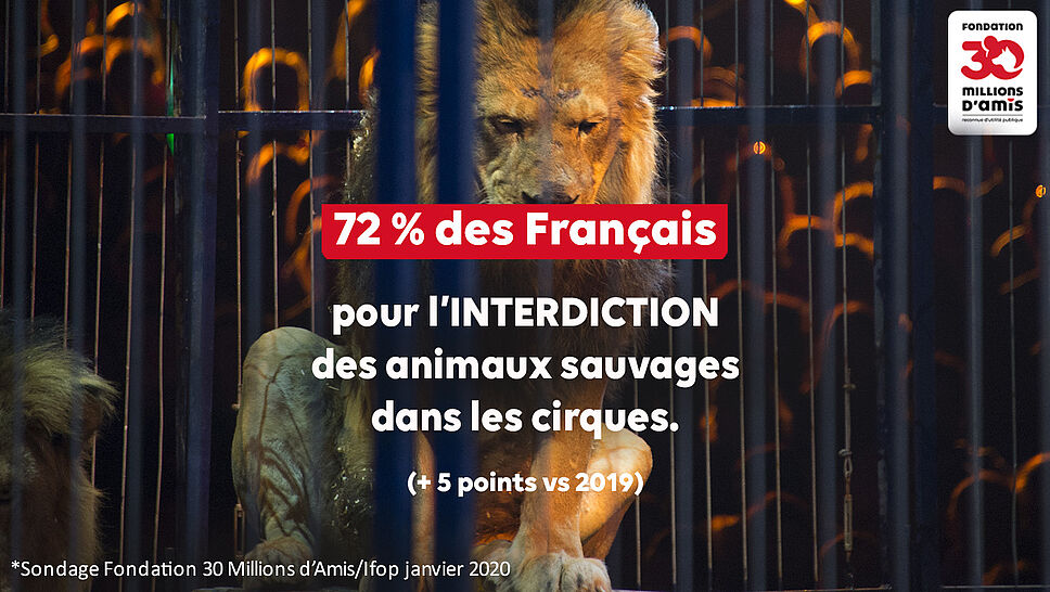 72 % (+5 vs pts 2019) sont favorables à la fin de l’exploitation des animaux sauvages dans les cirques. 23 pays de l’Union européenne sur 28 ont déjà adopté une telle mesure. De nombreuses communes de France _ comme Paris-capitale – ont clairement exprimé leur refus d’accueillir sur leur territoire des cirques exploitant des animaux sauvages, sous l’impulsion de la Fondation 30 Millions d’Amis et de l’association Code Animal. La pétition de la Fondation 30 Millions d’Amis pour interdire l’exhibition des animaux sauvages dans les spectacles itinérants recueille déjà plus de 320.000 signatures. La nouvelle ministre de la Transition écologique et solidaire, en charge de ce dossier, a annoncé vouloir prendre des mesures en ce sens…